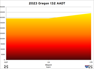 Graphical representation of ODOT annual average daily traffic (AADT) data for OR-132 from their 2023 Transportation Volume Tables.