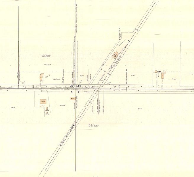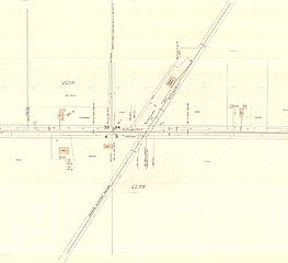 Close-up of the Champoeg Memorial Highway located line ROW map showing the routing near Butteville Station.