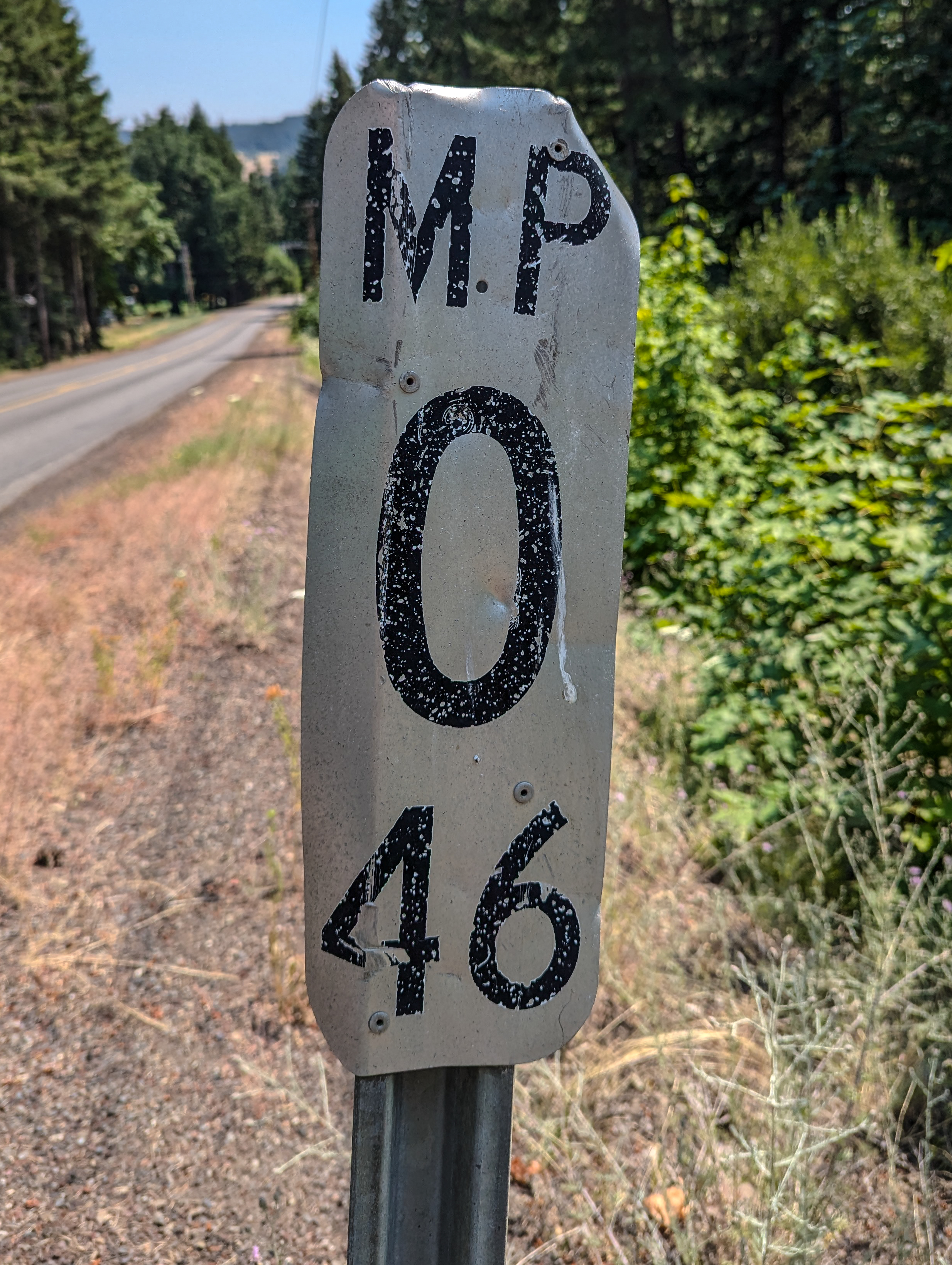 A Hood River County milepost at MP 0.46 on Baseline Drive near Parkdale.