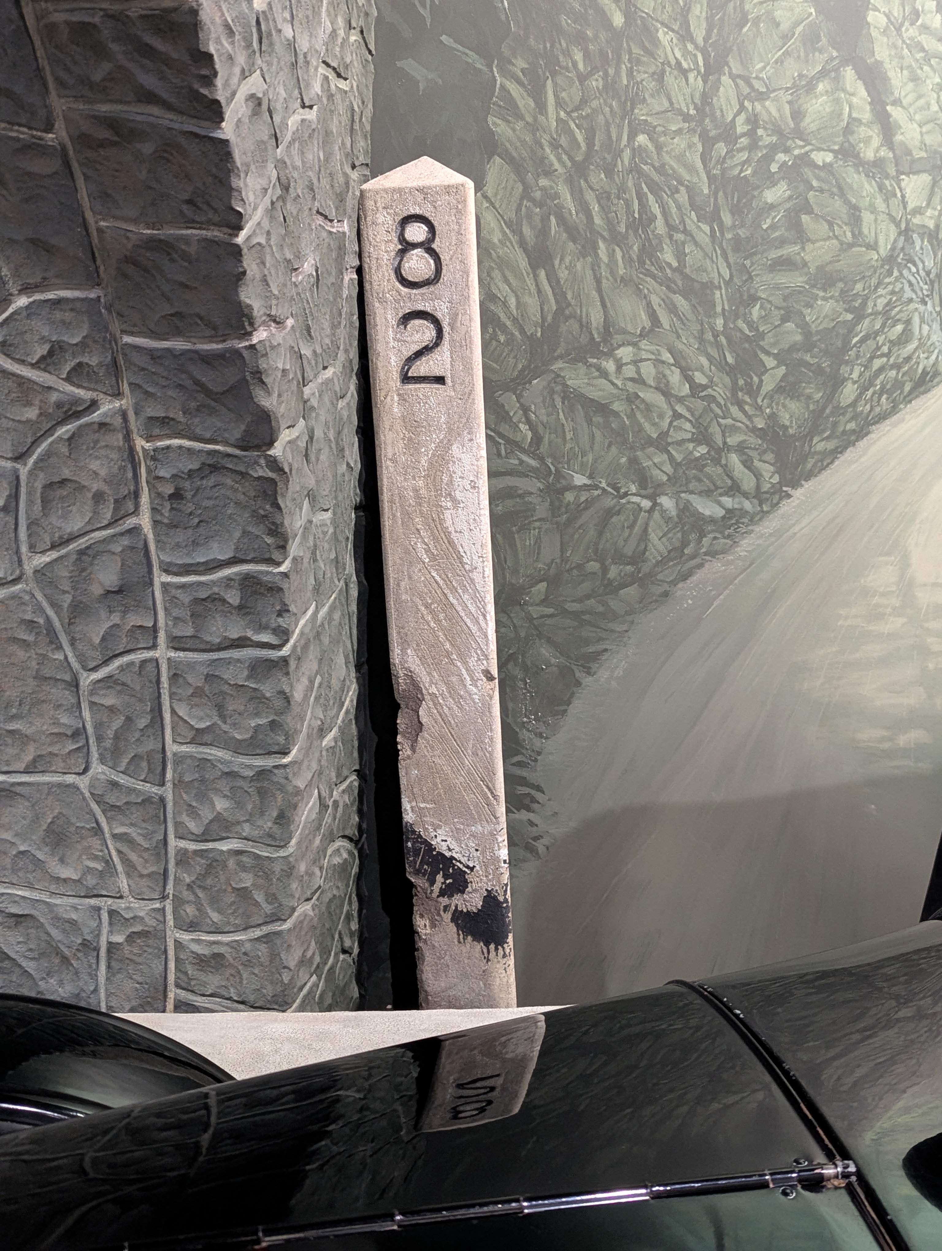 Original concrete milepost 82 at the Columbia River Discovery Museum in The Dalles.